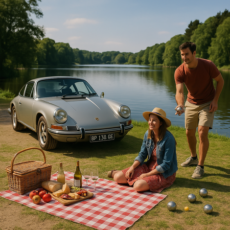 👉 Résultat : des photos plutôt originales, comme cette 997 Turbo posée sur une cale de mise à l’eau pour bateaux. Pas banal ! 🚤⚡